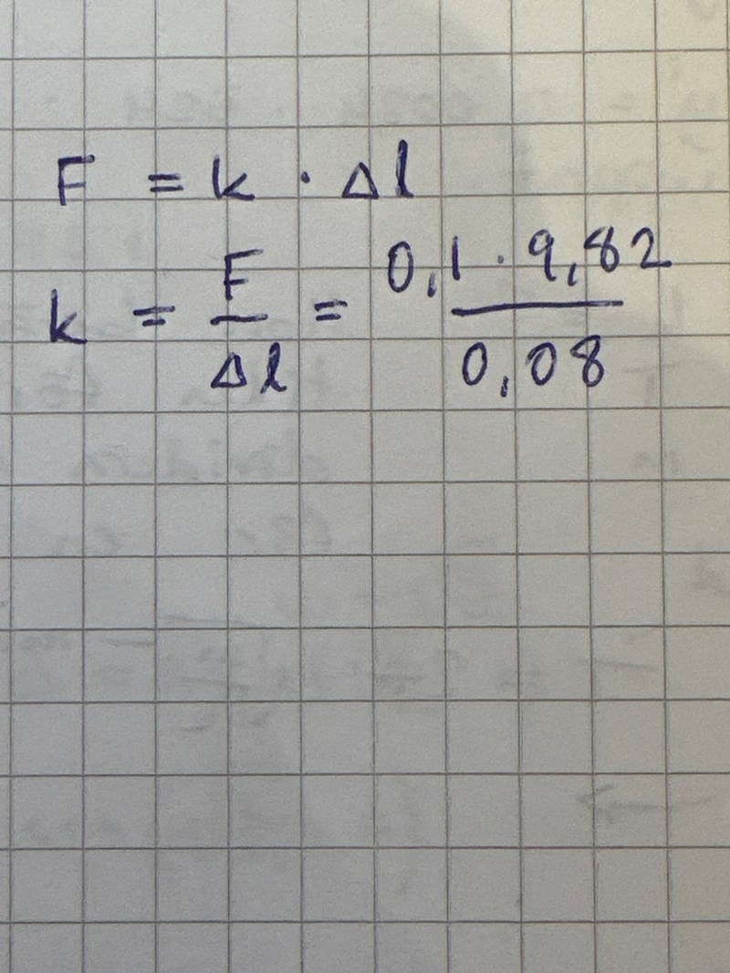 På c uppgiften ska man bestämma fjäderkonstanten. Varför kan man inte göra som jag gjorde?