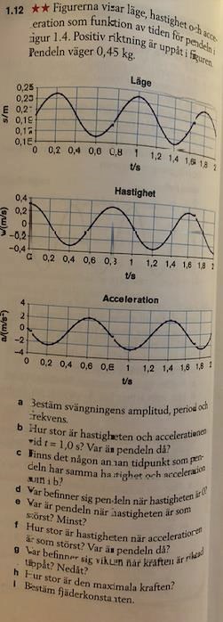 Fråga 3. I första diagrammet när de säger läge hur menar de då? Förstår inte hur den ska förhålla sig. Är y axeln alltså höjden från marken? Hur kommer det sig då att hastigheten är noll vid lägsta och högsta punkt borde det inte alltid vara i högsta punkt ifall det är en pendel.