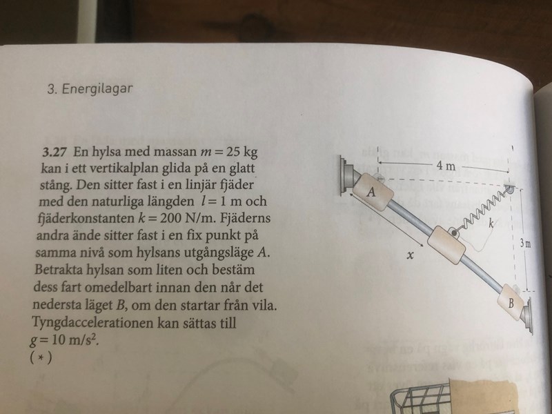 - Vilken potentiella energi lagras i fjädern? Hur är dess utsträckning vid punkt A relativt punkt B? (Edit: Tänk på att du vet dess naturliga längd på 1 meter)