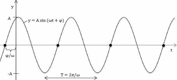 Dvs för att förskjuta tidsaxeln för vad t=0 är från jämviktsäget till max utslag, så måste förskjutningen vara en fjärdedels period.