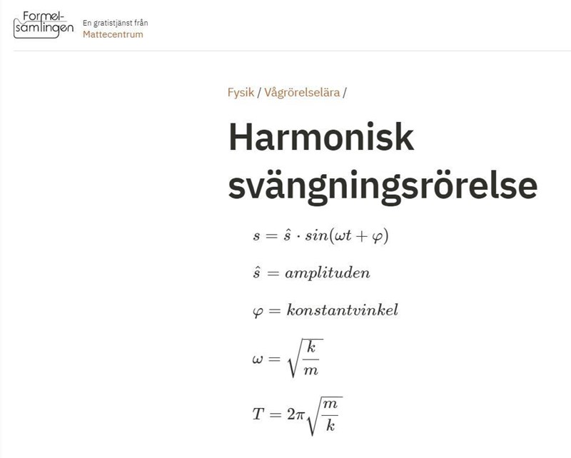 - Först göra om din formelsamlingsformel så att tidpunkten verkligen hamnar i ändläget där man släpper vikten, och sedan använda .