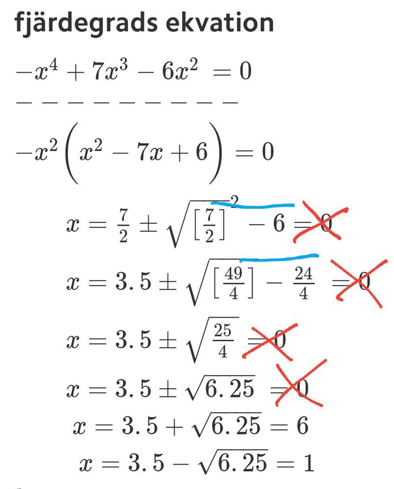 2. "= 0" ska bort när du har använt pq-formeln (röd markering).