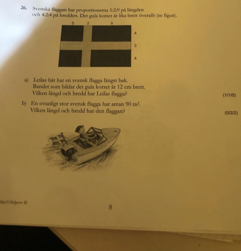 Nästa fråga säger att flaggan är 90m2 och du vill veta hur stor förstoringsfaktorn ska vara för att flaggan ska bli så stor.