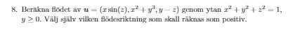 nej, men jag tänker räkna gauss sats för hela enhetsklotet och sedan ta bort det som var extra, men jag vet inte exakt hur jag räknar ut det som är extra
