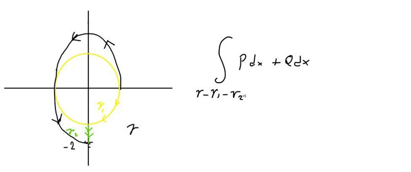 Du ska undvika att den positivt orienterade slutna kurvan omsluter singulära punkten (origo).