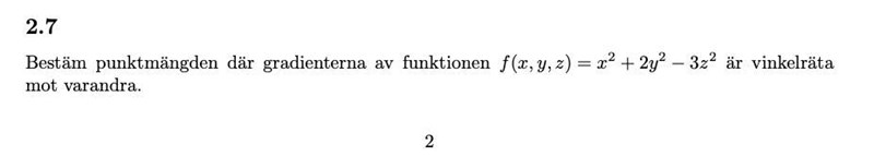 Ja, jag får att gradienten är (2x, 4y, -6z). Men jag vet inte vad jag ska göra med detta.