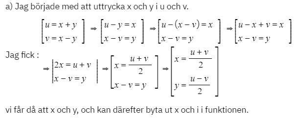 Jag började med att ta reda på x och y uttryckt i u och v.