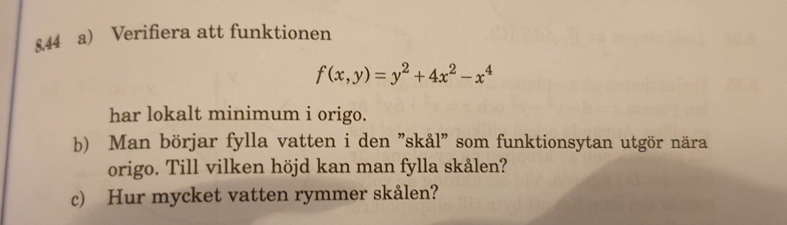 Hej. Jag skulle behöva hjälp med uppgift c i bilden. Jag vet inte riktigt hur ska göra för att beräkna volymen
