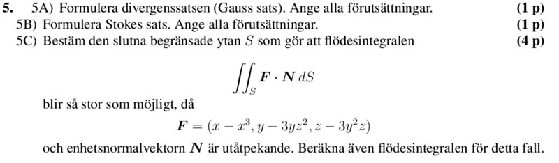 Man ska ju använda divergenssatsen till den uppgiften! Osäker om det ö.h.t går med Stokes sats, och om det går ska du inte behöva kunna det till tentan! Lycka till om du skriver tentan nu i maj på KTH med Roy som examinator.