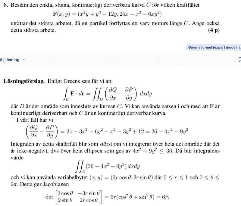 Hur löser man den med greens formel? jag får 216*pi