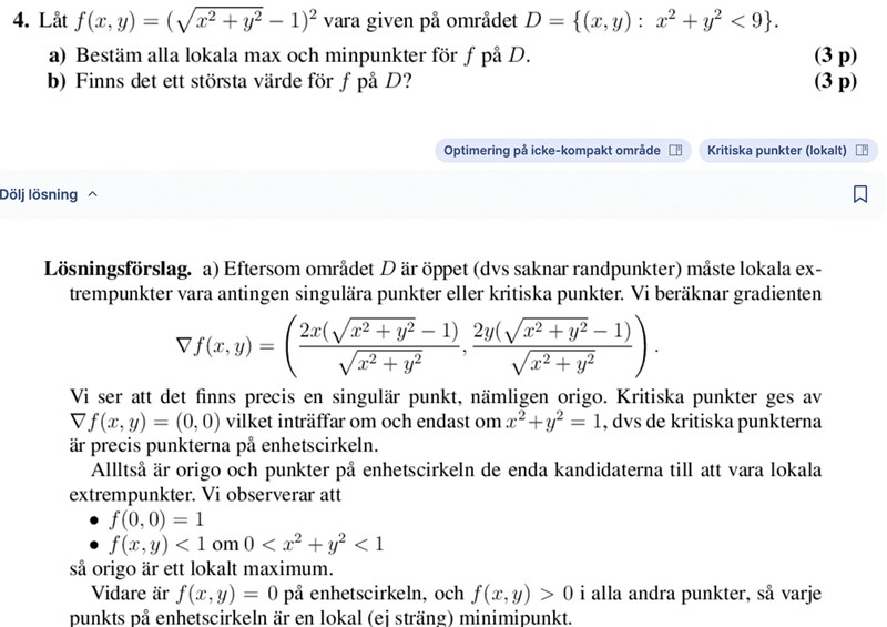 flervariabelanalys: Bestäm lokala max och minpunkter på ett område för f(x,y)