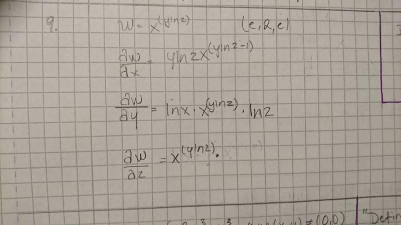 Visa hur du har försökt derivera m a p z, så kan vi hjälpa dig därifrån. Eftersom du skall betrakta x och y som konstanta och derivera med avseende på z i exponenten borde det inte vara alltför svårt (skriv om så att du får basen e).