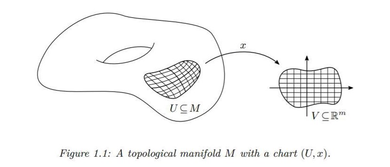 Lite mer precist är det ett topologiskt rum (med detta menar vi en mängd punkter där det är meningsfullt att tala om omgivningar av punkterna), sådant att man lokalt vid varje punkt kan tänka sig en -dimensionell parametrisering av rummet [eller ekvivalent: kan införa ett lokalt -dimensionellt koordinatsystem]. Dessutom vill man att de här lokala parametriseringarska vara kompatibla med varandra, i bemärkelsen att om två lokala parametriseringar överlappar med varandra, så kan man byta från den ena parametriseringen till den andra med en oändligt deriverbar funktion.
