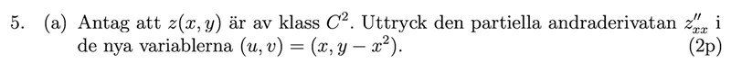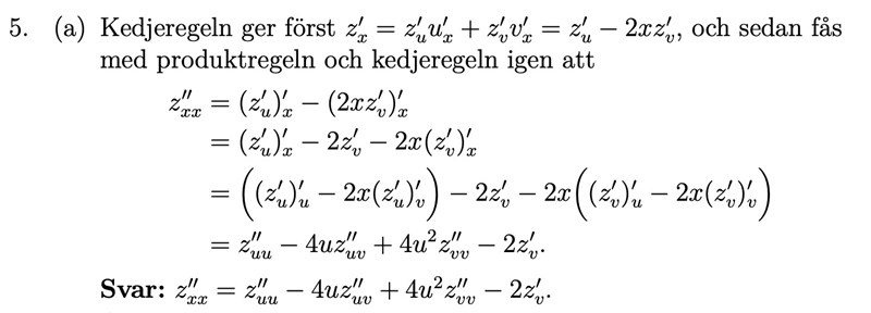 Jag försökte lösa denna uppgift men kom enbart till det andra steget i den nedre ekv som beskriver z´´xx och trodde i princip att jag var klar. Jag förstår varken varför man fortsätter efter den andra raden eller vad fortsättningen betyder.