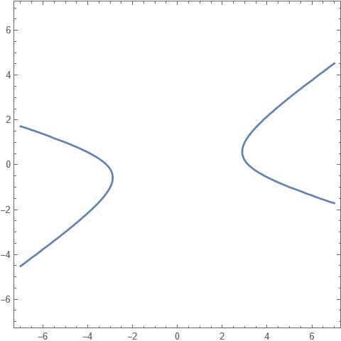 Men på uppgift b) söker vi värden på en hyperbel (den har två grenar). Och det visar sig att den mängden (kurvorna) varken är begränsad eller sluten