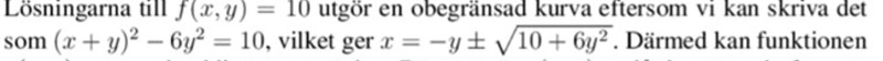 i nästsista raden i lösningen står det -15x^2= 10 men om jag stoppar in x=y/2 i f(x,y)=10 så får jag -15x^2=40. Hur får de något annorlunda? I slutändan så saknar den ändå lösning för det blir minus i rottecknet men varför får jag samma fram till nästsista raden?