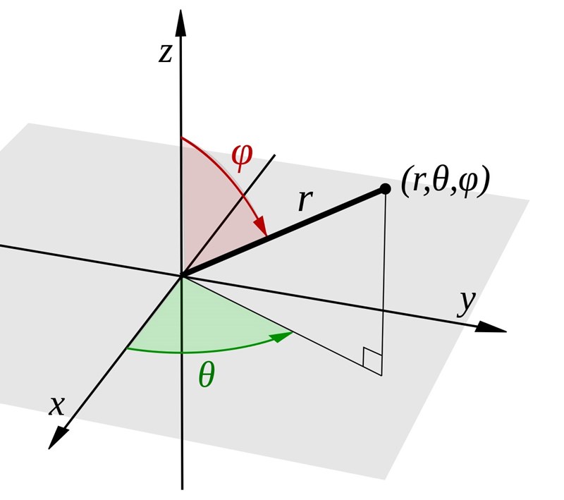 Om vi nu tar sfäriska kordinater kommer så vi får av att och gör ju bara att vi måste ändra till (kolla på bild och fundera varför)