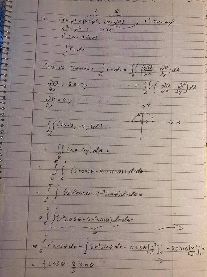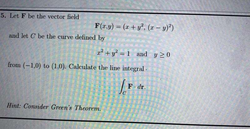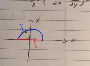 Vidare har du inte visat att linjeintegralen utmed det  räta linjesegmentet från (1,0) till (-1,0) (då y=0) ger 0.