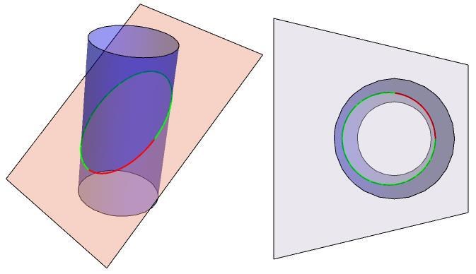 När vi tittar på skärningskruvan rakt ovanifrån ser den ut att bilda en cirkel i xy-planet.