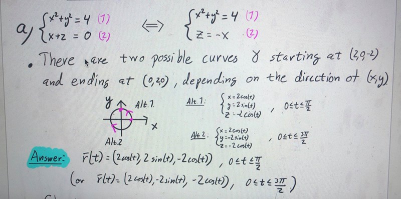 När du studerar kurvan i xy-planet är det bara dess projektion du ser. Den röda kurvan är Alt.1 och den gröna kurvan är Alt.2.