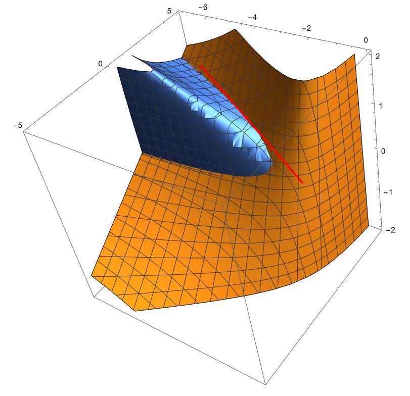 Tag korsprodukten på gradienterna och du har linjens riktningsvektor v. Normera vid behov.