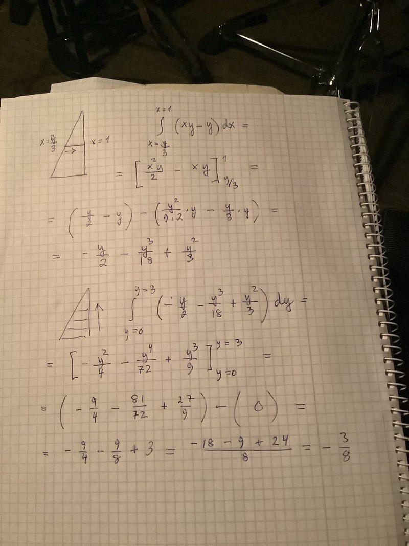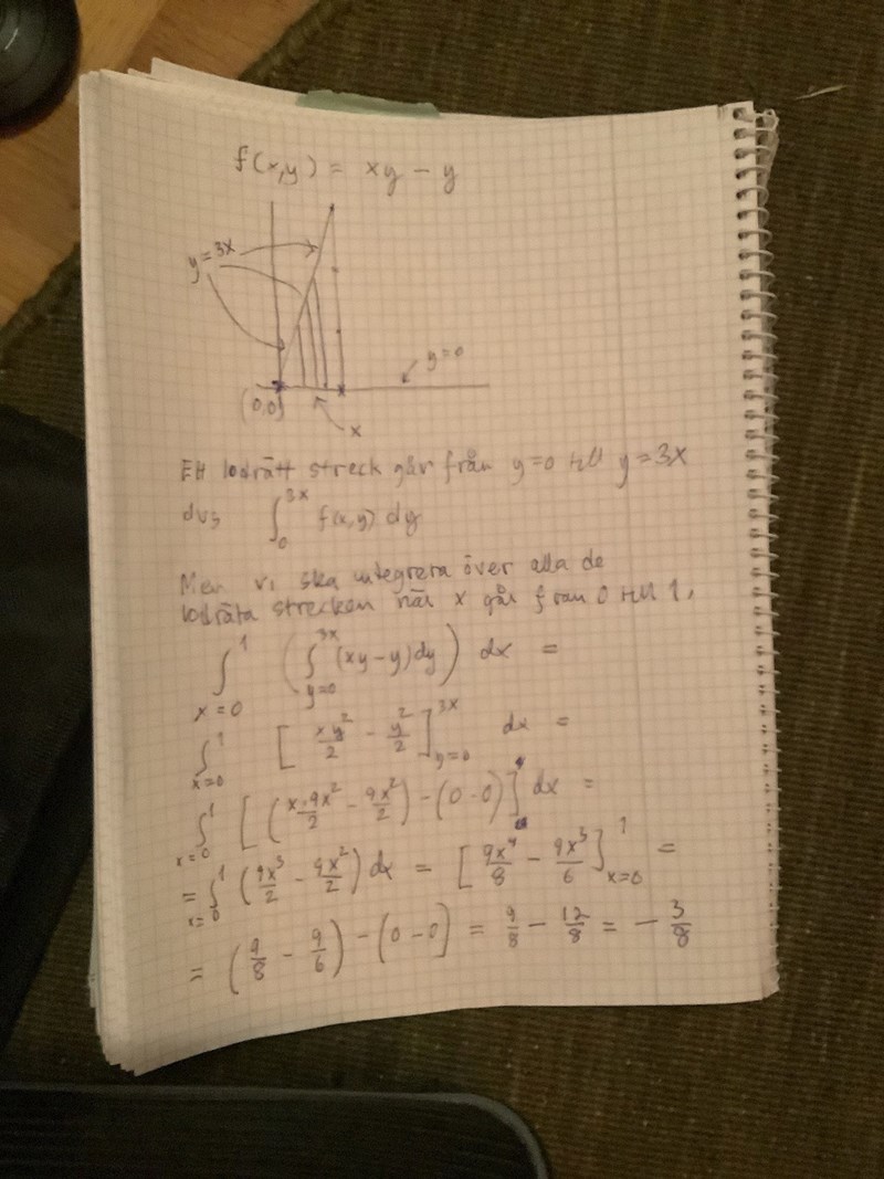 Okej varför integrerar du dy först? Jag försöker integrera dx först o sen dy..