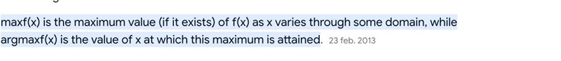 Nja, max f(x) är det största värdet, om ett sådant finns, på funktionen. Det som du nämner brukar ibland betecknas argmax f(x), vilket är det (eller de) värden på x där funktionen får sitt största värde.