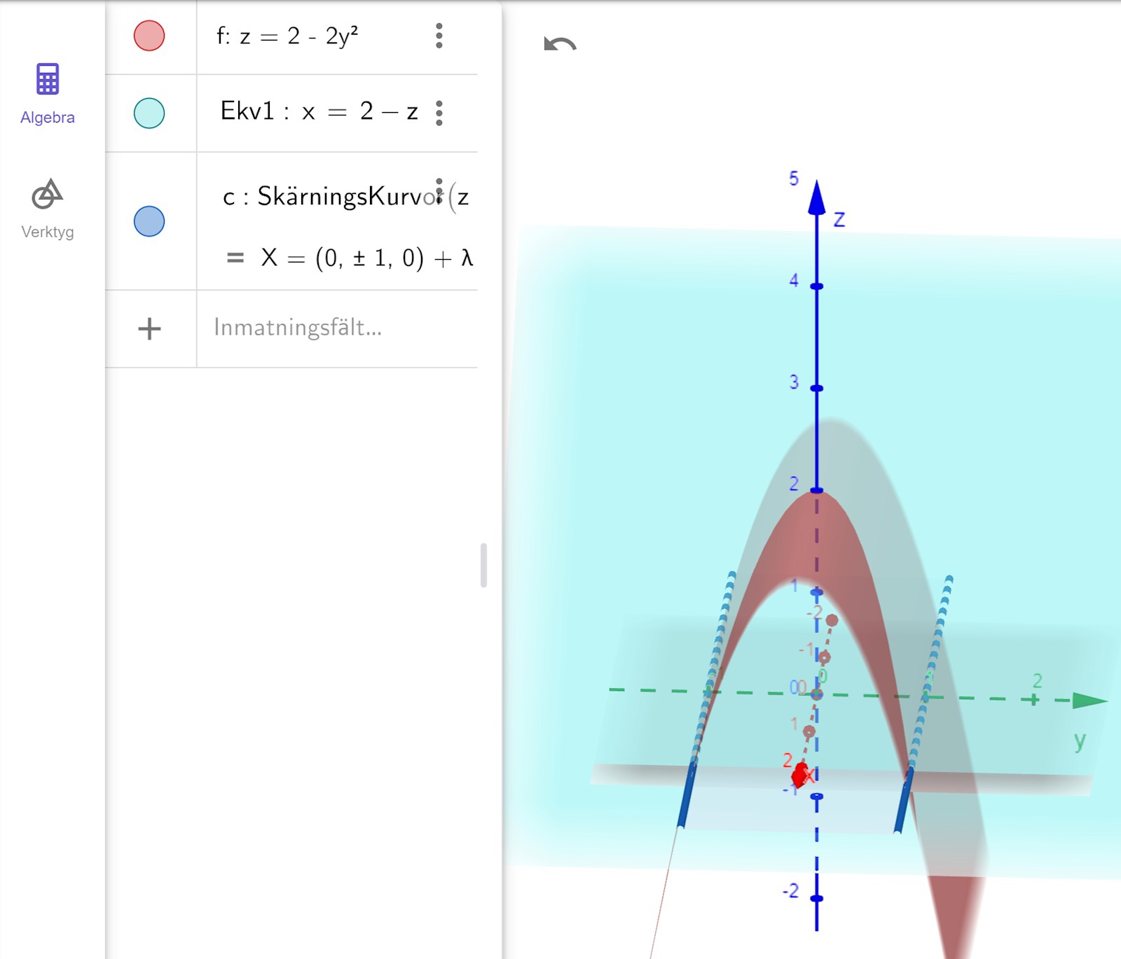 z ≤ 2-2y^2 ger oss att 2y^2 ≤ 2-z d.v.s. y^2 ≤ 1-z/2. Då z≥0 är högerledet ≤1 och vi har olikheten y^2≤1 vilket ger -1≤y≤1.