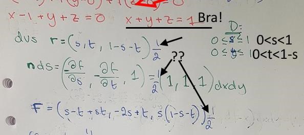 Jag improviserade och typ normaliserade allt 🙈. Deaperat försök. Jag har provat räkna om igen, men jag fattar inte hur jag ska tänka när det gäller definitionsmängden D. Jag halkar helatiden tillbaka till att både s och t går mellan 0 och 1 trots att jag fattar att det inte borde vara så. Anledningen att jag tänker så är att om s representerar x och x går mellan 0 och 1 borde även s göra det och på motsv sätt med t.