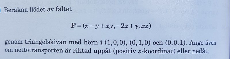 Ja, du har beräknat flödet genom ytan med och får ett negativt svar. Det innebär att flödet går åt "andra hållet", alltså ned mot den bruna ytan.