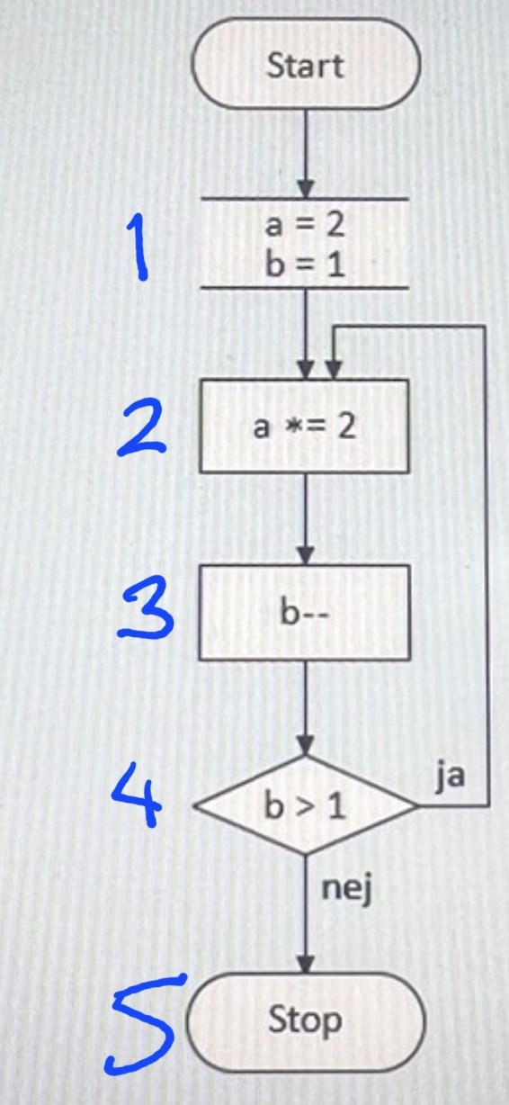 - Variabeln a får värdet 2 och variabeln b fårvärdet 1.
