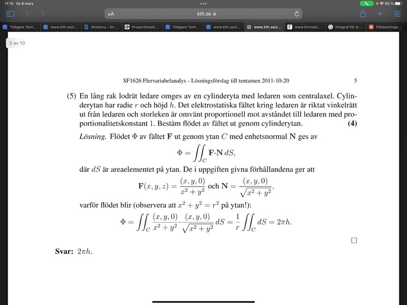 Hej, jag förstår inte vad jag gör fel. Till höger är frågan med lösningförslag och till vänster är mina anteckningar från våra föreläsningar. Det jag förstår är att det bara är ett flöde genom mantelytan då flödet är vinkelrät från ledaren. Mina vektorer blir inte samma som deras, och jag har provat flera olika sätt men man måste ju använda divergenssatsen. Hur får man fram vektorerna, och vad är proportionalitetskonstanten? tack på förhand!