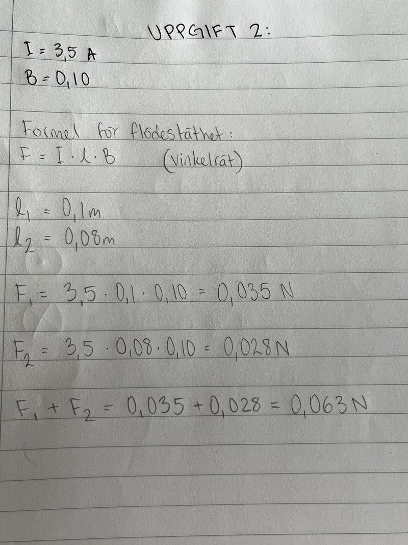 ledaren I = 3,5 A och flödestätheten B = 0,10."