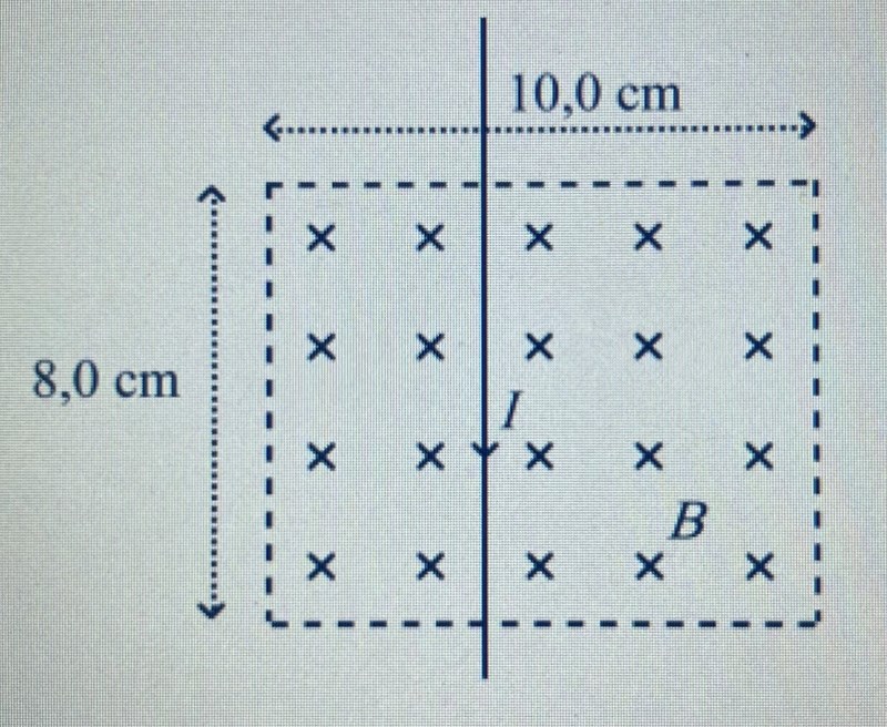 "En rak ledare befinner sig i ett homogent magnetfält med begränsad utsträckning enligt