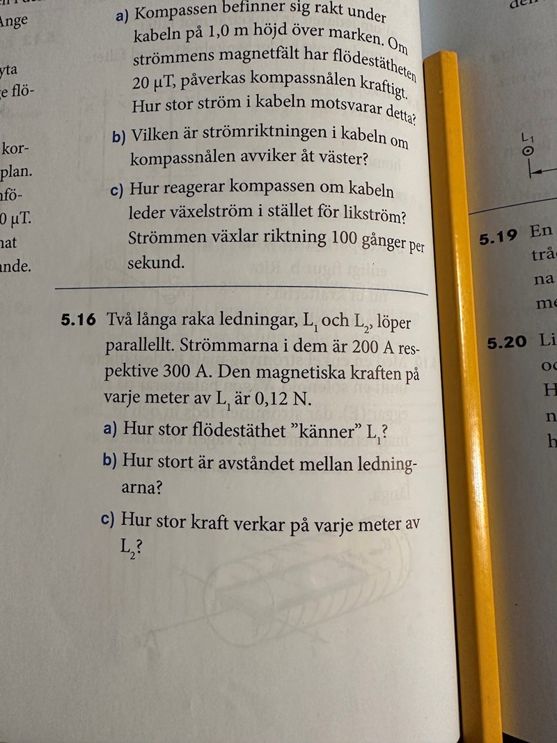 Men det kommer också att skapas en kraft på L2 pga magnetfältet runt L1, det kommer i fråga c).