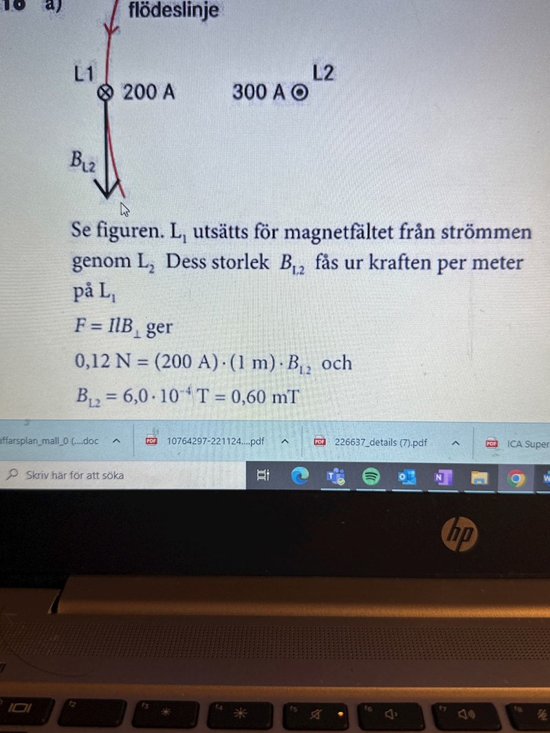Måste kraften inte komma från den andra ledaren eftersom om det finns bara en ledare så blir det ingen kraft eftersom det blir inget magnetfält(förutom jordens magnetfält)