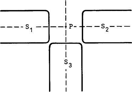 Flödestillskottet från s3 är vinkelrätt mot flödena från s1 och s2.