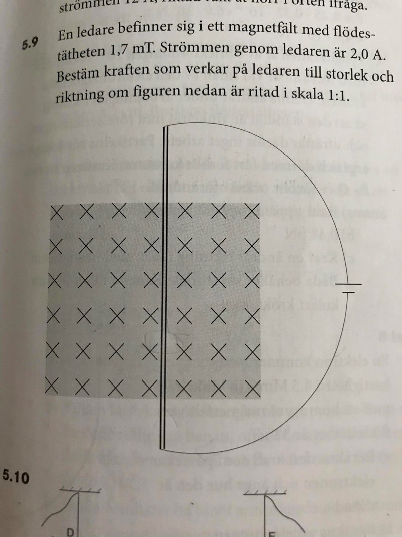 Strömmen går väl uppåt och flödet går väl in i pappret? Då borde kraften (handflatan) vara riktad mot vänster?