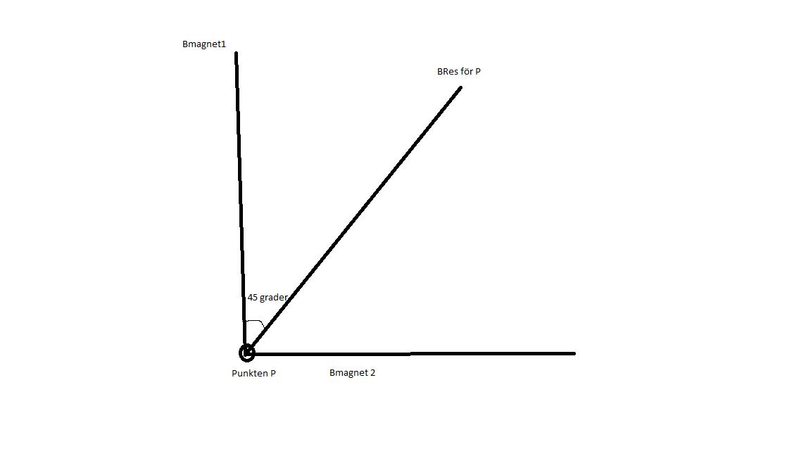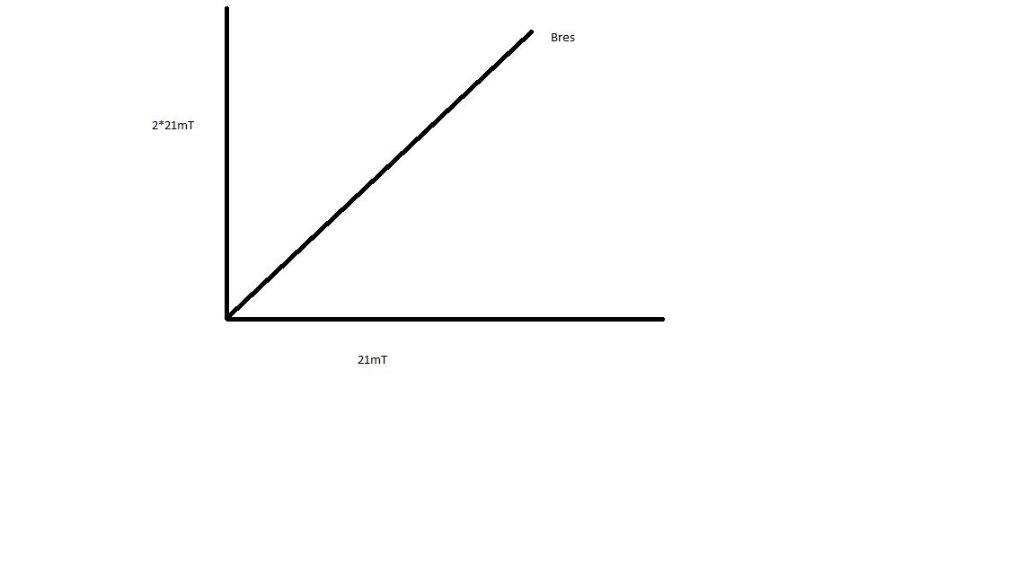 Detta gav mig att sin(45deg)=Bmagnet2/Bres => Bmagnet2 = sin(45deg)*21^10^(-3) vilket är ungefär 15mT.
