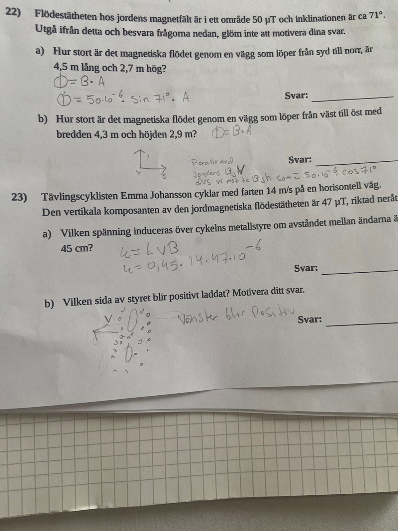 Hej, fråga 22.a) man ska få att magnetiska flödet är 0 men förstår inte varför? Är det för att väggen saknar bredd?
