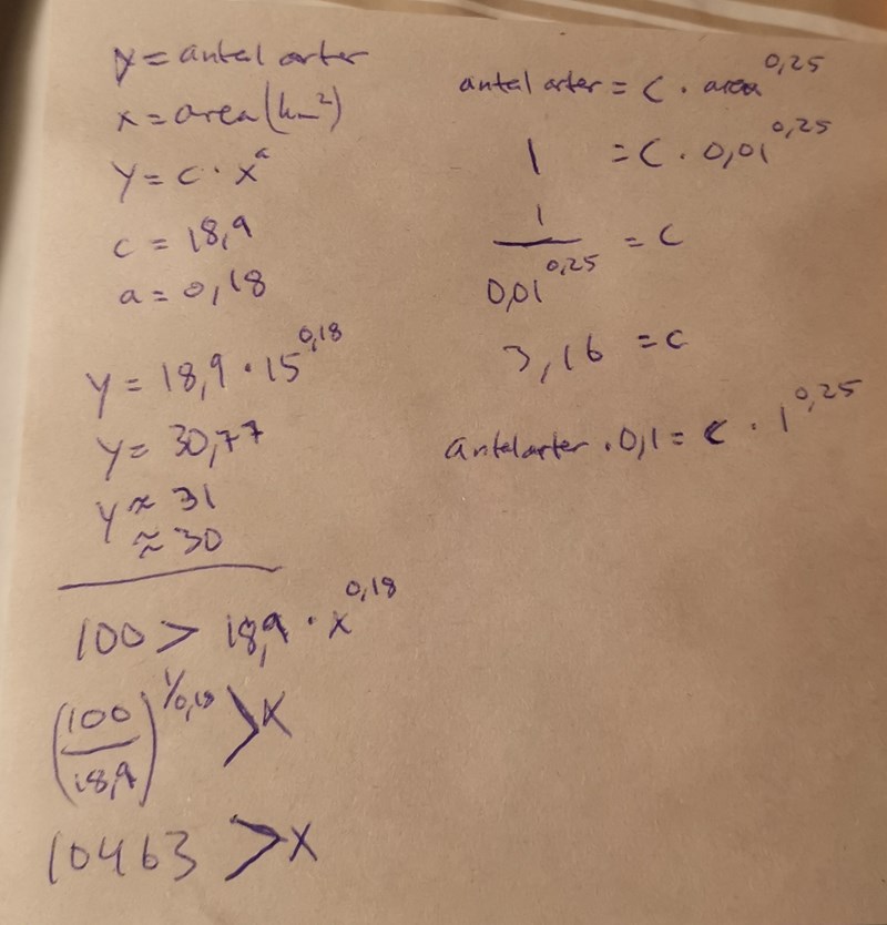 Om Amazonas krymper till 1 % av sin nuvarande utsträckning är Amazonas 0,01*x km2 stor.