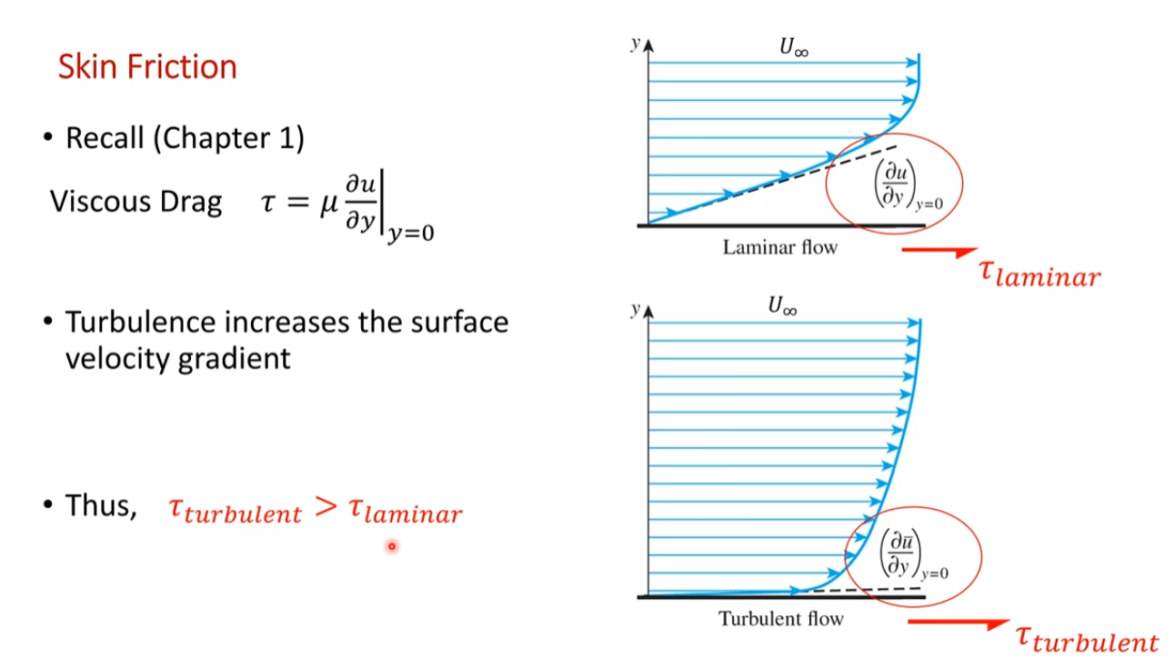 - Som exempel på en situation där detta är viktigt beskrev videomakaren hur fluiden beter sig runt en flygplansvinge där den inkommande luften strömmar laminärt. Då fluiden har strömmat en bit längs vingen börjar det bli turbulent inom fluidens "boundry layer" och då förstoras skjuvspänningarna i fluiden avsevärt. Han i videon menar att detta orsakar mer motstånd för flygplanet och därför större bränslekonsumption. Men det jag inte riktigt förstår är varför detta skulle spela någon roll för "vingen". Skjuvspänningarna existerar ju ute i fluiden, inte på vingen. Eller tänker man att fluidlagret som "dras med" av vingen måste dras med större kraft då den glider förbi närliggande fluidlager på grund av de större skjuvspänningarna?