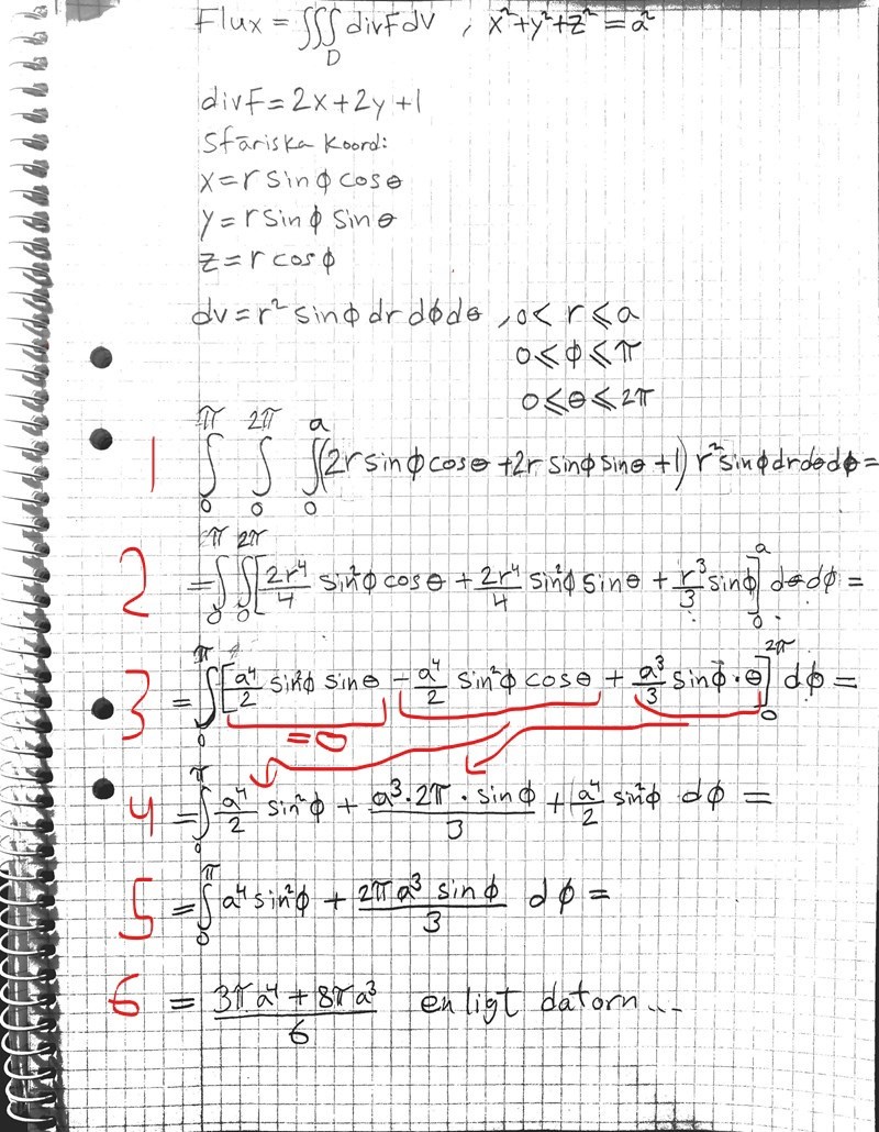 Integralen som är kvar blir som ju är samma sak som sfärens volym.