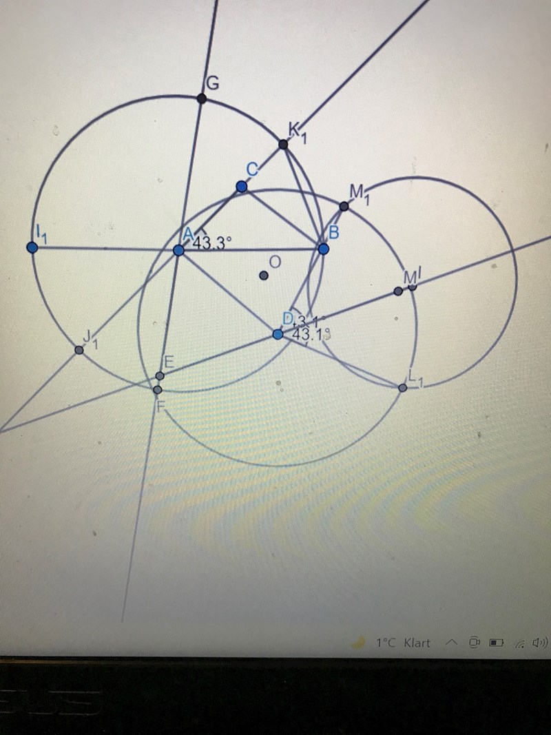 men om jag ska göra på samma sätt i denna uppgiften så fungerar det inte då jag får inte båda punkterna B och C på samma cirkel.