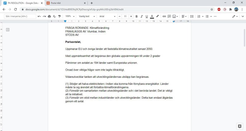 Det beror lite på vad ni fått för instruktioner om hur resolutionen ska skrivas. Är det inför ett FN-rollspel?