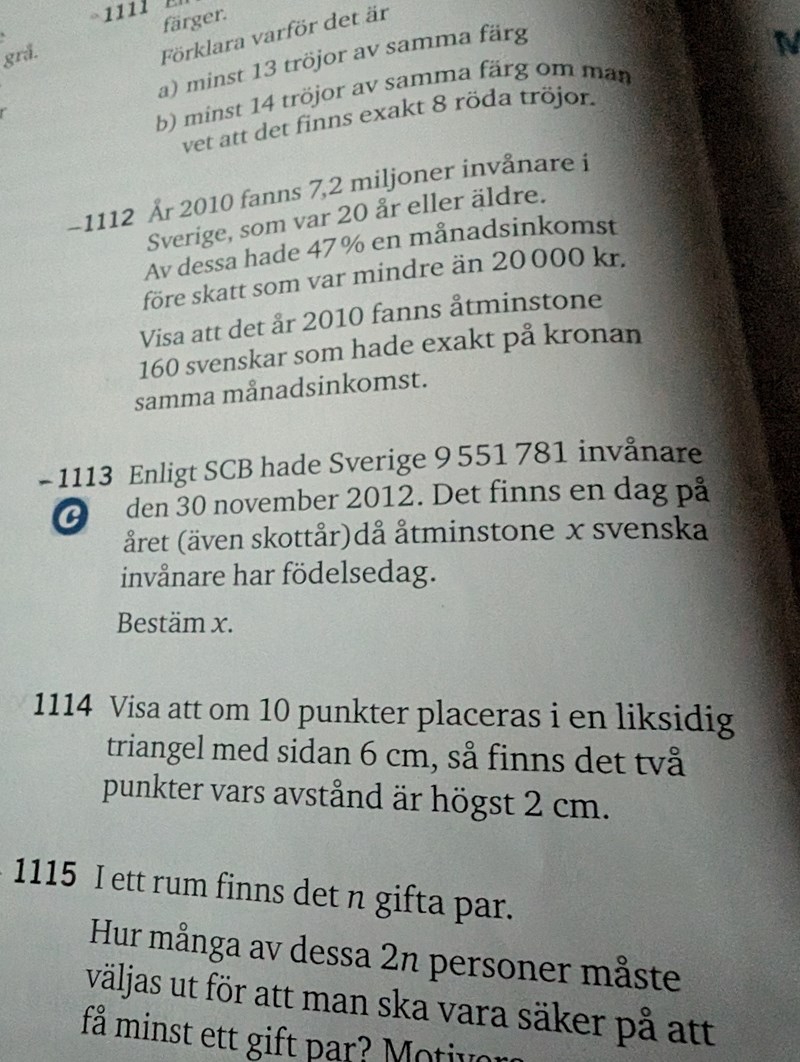 Förstår inte fråga 1113. Det är klart att det finns en dag på året då x svenskar har födelsedag..