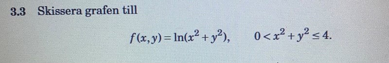 Hej! Jag började med att läsa denhär uppgiften genom att rita den i yz-planet genom att sätta x=0 och jag fick då z=2ln y men jag vet inte hur jag ska tolka villkoret oxh använde det, alltså att de ska vara större än noll o mindre o lika med 4!