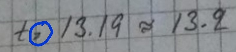2. Du skrev t = 13,19 men även det är ett närmevärde och du bör alltså använda tecknet ungefär lika med.