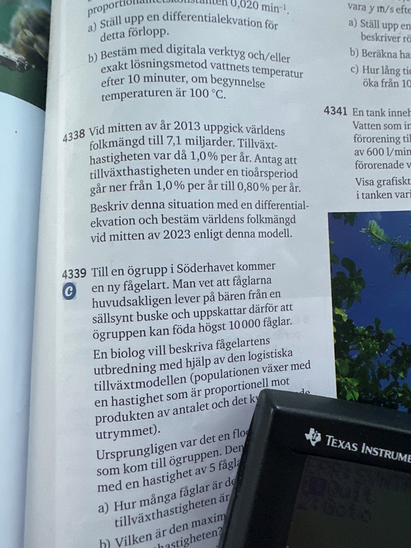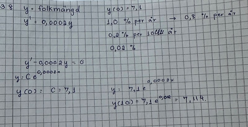 tillväxthastighet vid t=1 är 0,98% --> y'(1) = 0,0098y = (0,01 - 0,0002)y
