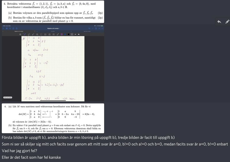 Om b är noll blir ju determinanten noll och du får ingen bas.